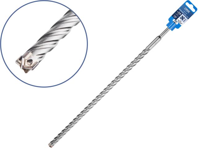 Тип и назначение: бур (сверло) для особо сложных работ при сверлении отверстий в железобетоне, бетоне, кирпичной кладке, камне, граните. Оснащен цельным X-образным твердосплавным наконечником Ceratizit повышенной твердости с четырьмя режущими кромками, который фиксируется особо прочным припоем, рассчитанным на высокие рабочие температуры и значительные ударные нагрузки. Центрирующий наконечник обеспечивает точное засверливание. 4 отдельные канавки быстро и эффективно удаляют шлам и повышают производительность. Тело сверла обладает большей жесткостью, а следовательно меньше подвержено колебаниям в процессе бурения, что улучшает точность просверленного отверстия, снижает износ тела бура и вибрации перфоратора. Подходит для интенсивных нагрузок;