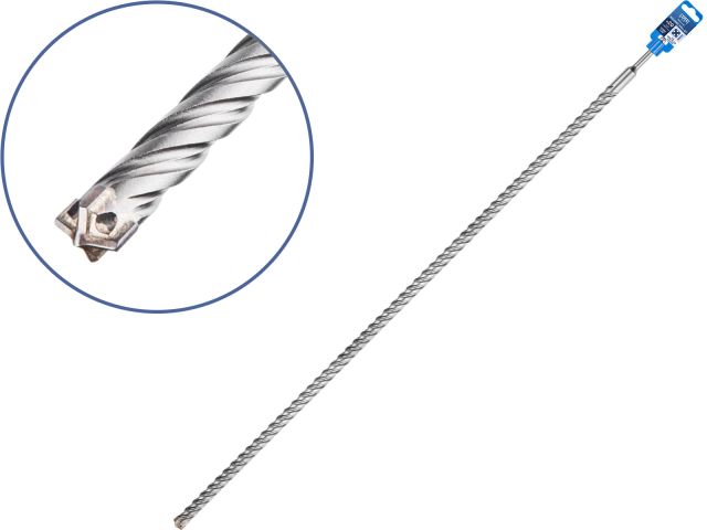 Тип и назначение: бур (сверло) для особо сложных работ при сверлении отверстий в железобетоне, бетоне, кирпичной кладке, камне, граните. Оснащен цельным X-образным твердосплавным наконечником Ceratizit повышенной твердости с четырьмя режущими кромками, который фиксируется особо прочным припоем, рассчитанным на высокие рабочие температуры и значительные ударные нагрузки. Центрирующий наконечник обеспечивает точное засверливание. 4 отдельные канавки быстро и эффективно удаляют шлам и повышают производительность. Тело сверла обладает большей жесткостью, а следовательно меньше подвержено колебаниям в процессе бурения, что улучшает точность просверленного отверстия, снижает износ тела бура и вибрации перфоратора. Подходит для интенсивных нагрузок;